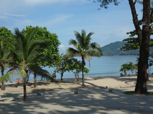 プーケット島の西海岸のほぼ中央にあり、全長約3kmの白砂のビーチ。